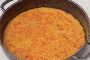 El caldero es uno de los platos de tradición pesquera más significativos de Cartagena y el Mar Menor hecho a base de arroz, pescado, ñoras y ajo.